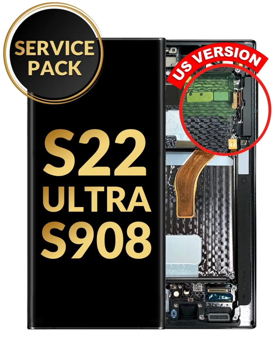 / Galaxy S22 Ultra S908 OLED Assembly w/Frame – (PHANTOM BLACK) (Service Pack)