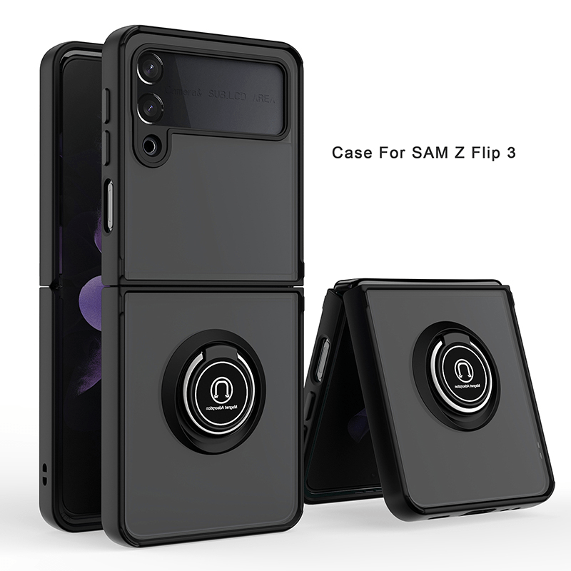 / Metal Ring Kickstand Cover for Samsung Z Flip 3- Black